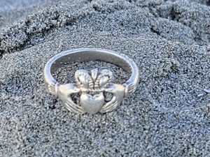 On another note, the word “claddagh” comes from the Gaelic word Cladach which means “shore”. While most people will also recognize the famous Claddagh rings worn by many as promise, engagement, or wedding rings featuring two hands holding a crowned heart representing loyalty, friendship, and love.