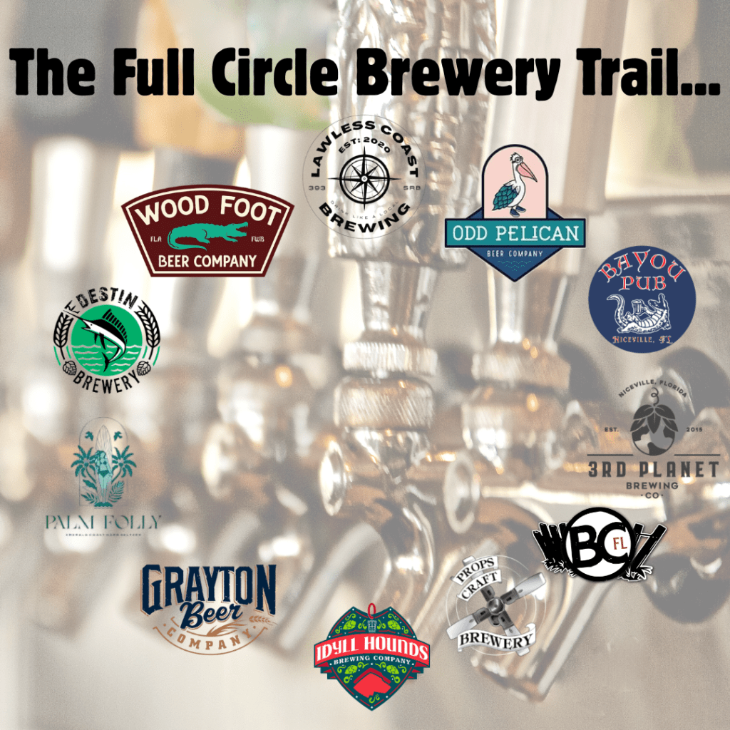 Travel the Claddagh Cottage curated Full Circle Brewery Trail! You’ll have the opportunity to experience 12 Craft Breweries along the trail from Santa Rosa Beach to Freeport to Niceville to Fort Walton and Destin. Drive and travel responsibly! Enjoy a pint or sampler, soak in the atmosphere, meet a local, create a memory – Slainte!