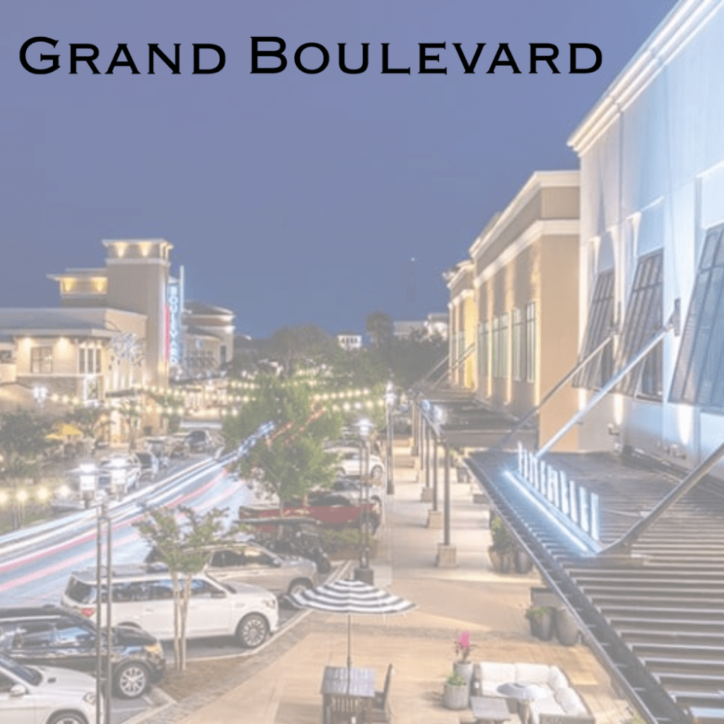 Welcome to Grand Boulevard, a mixed-use lifestyle center in Miramar Beach, Florida. The site includes the AMC 10 Theater, shops, restaurants, and hotels.